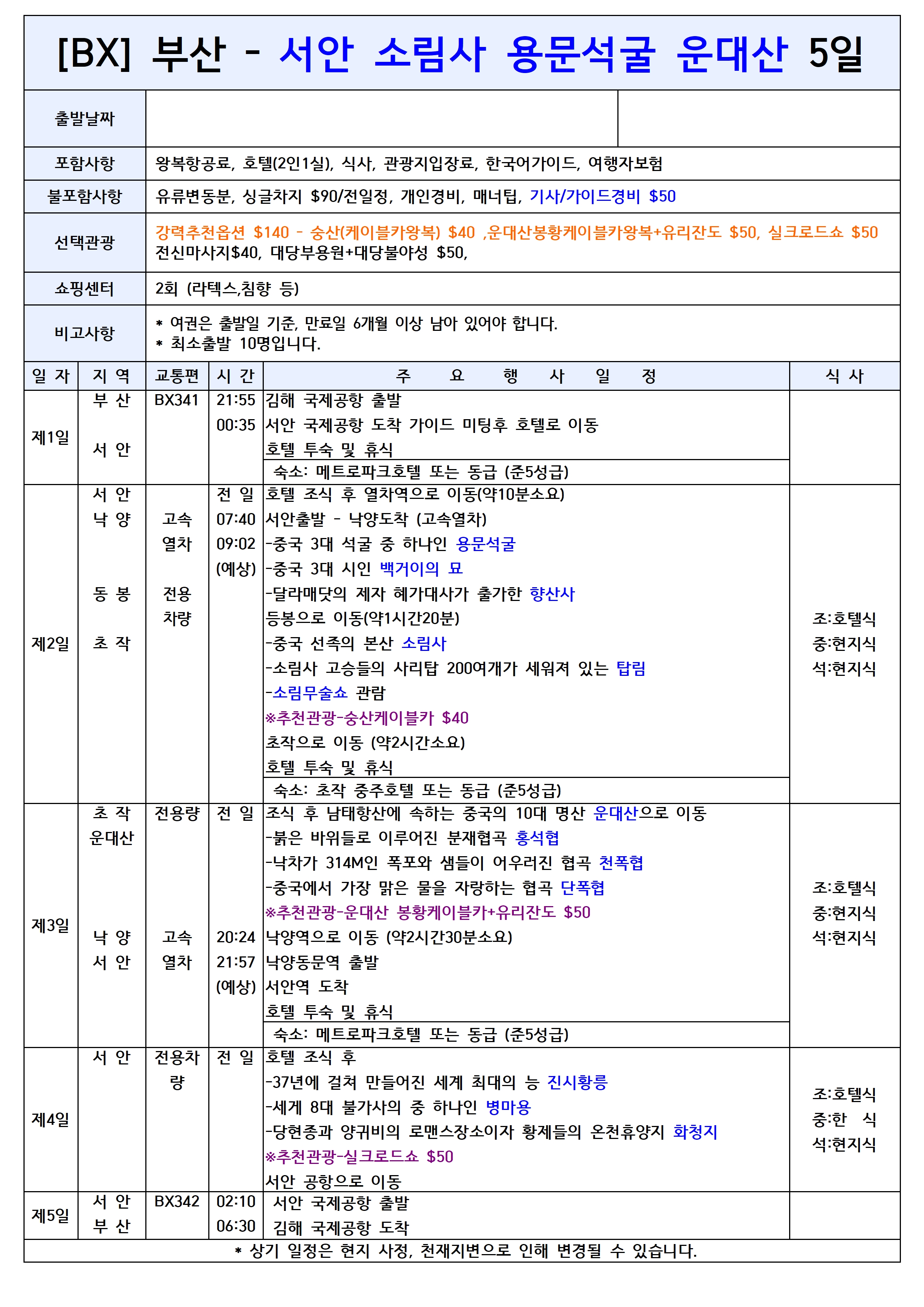 중국의 천년고도 서안과 함께 만나는 세계문화유산!!!