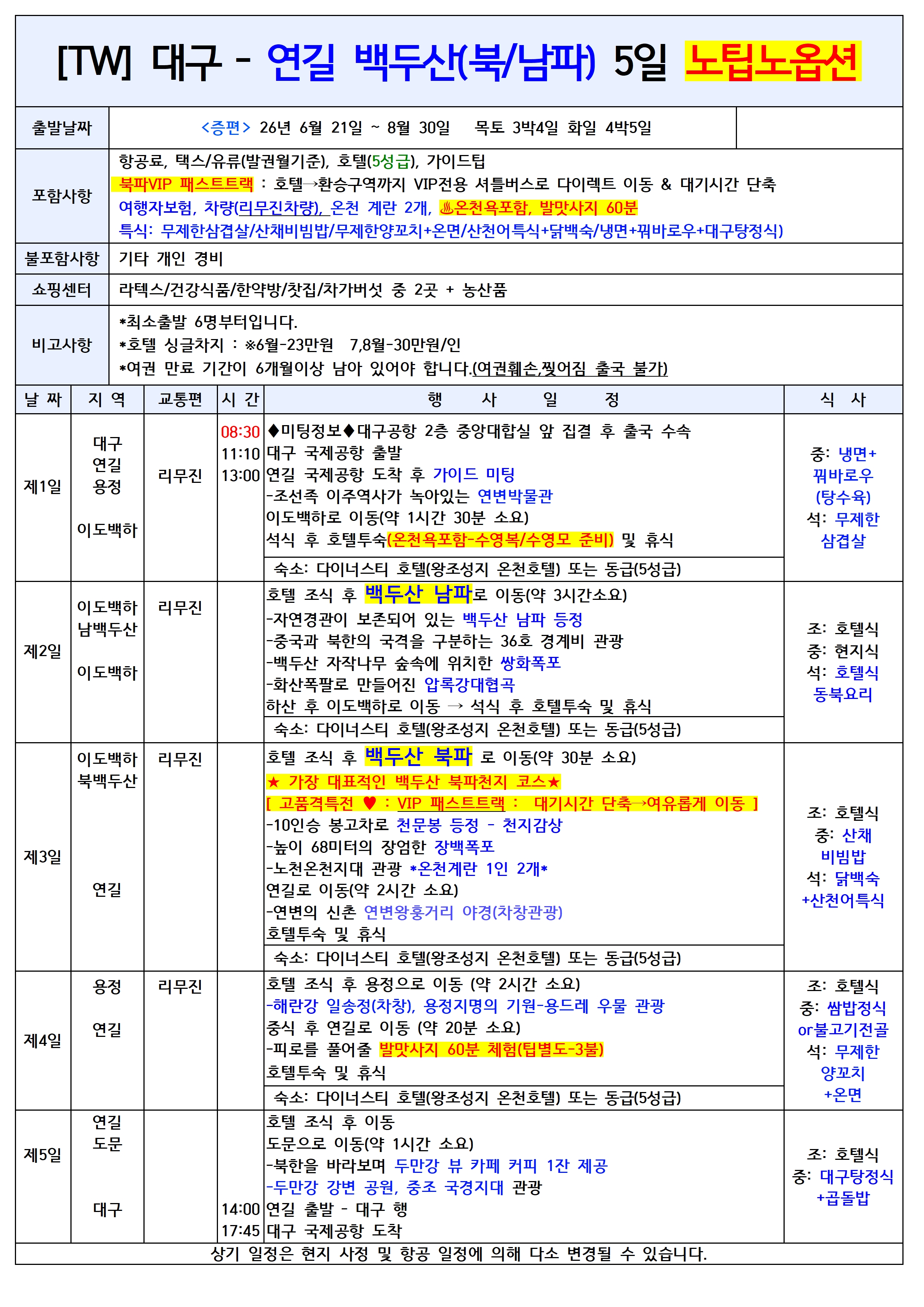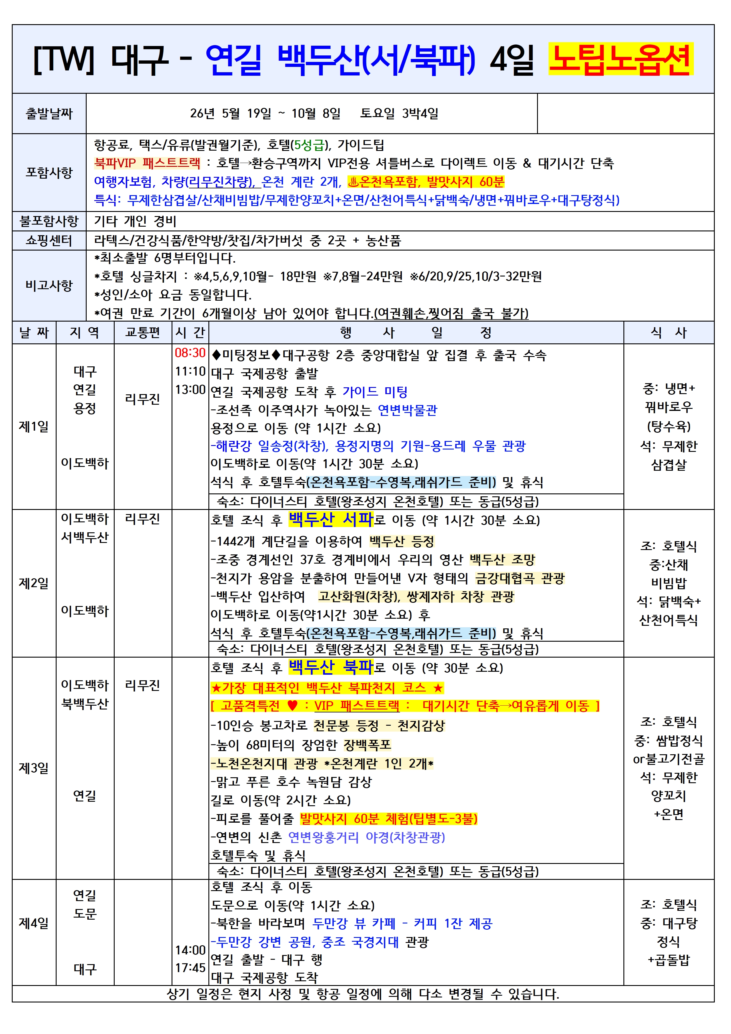 👉북파코스 ★VIP차량★ – 북파 패스트트랙 포함