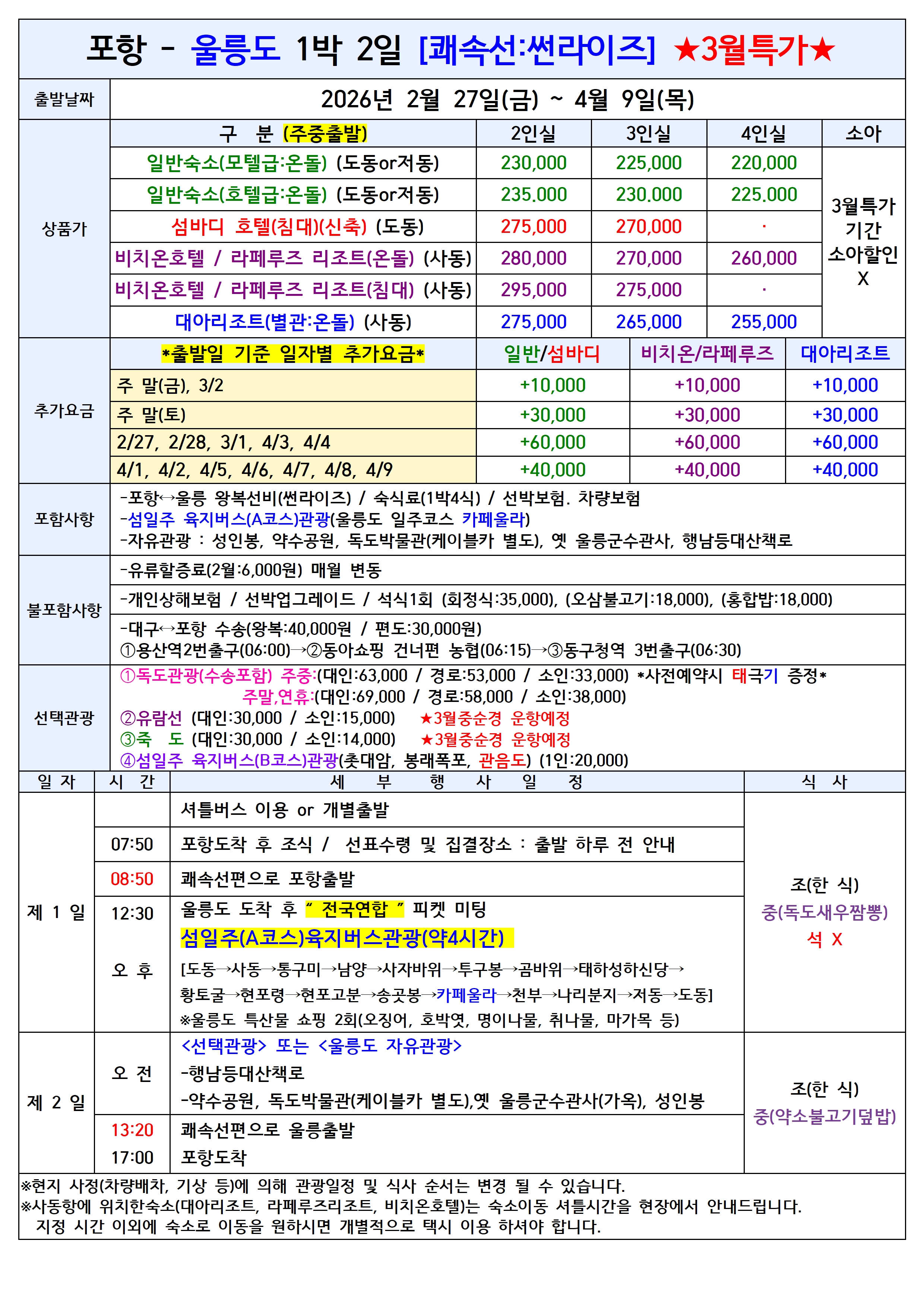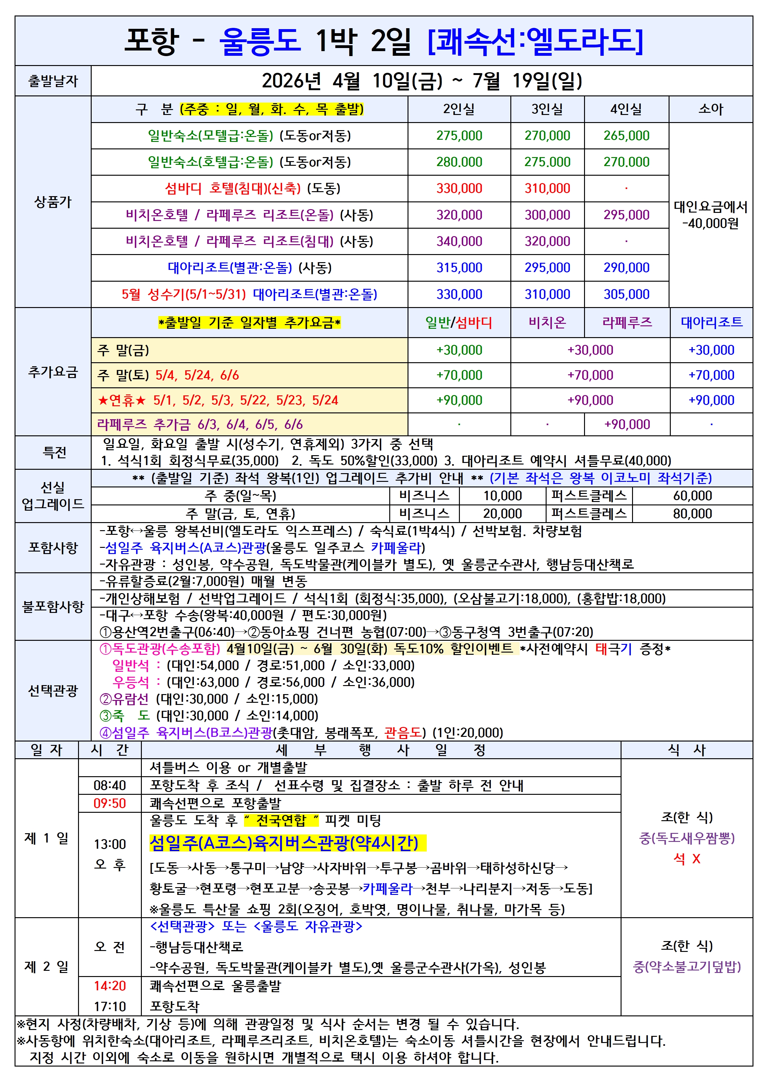 [포항출발] 울릉도 1박2일 쾌속선-썬라이즈
