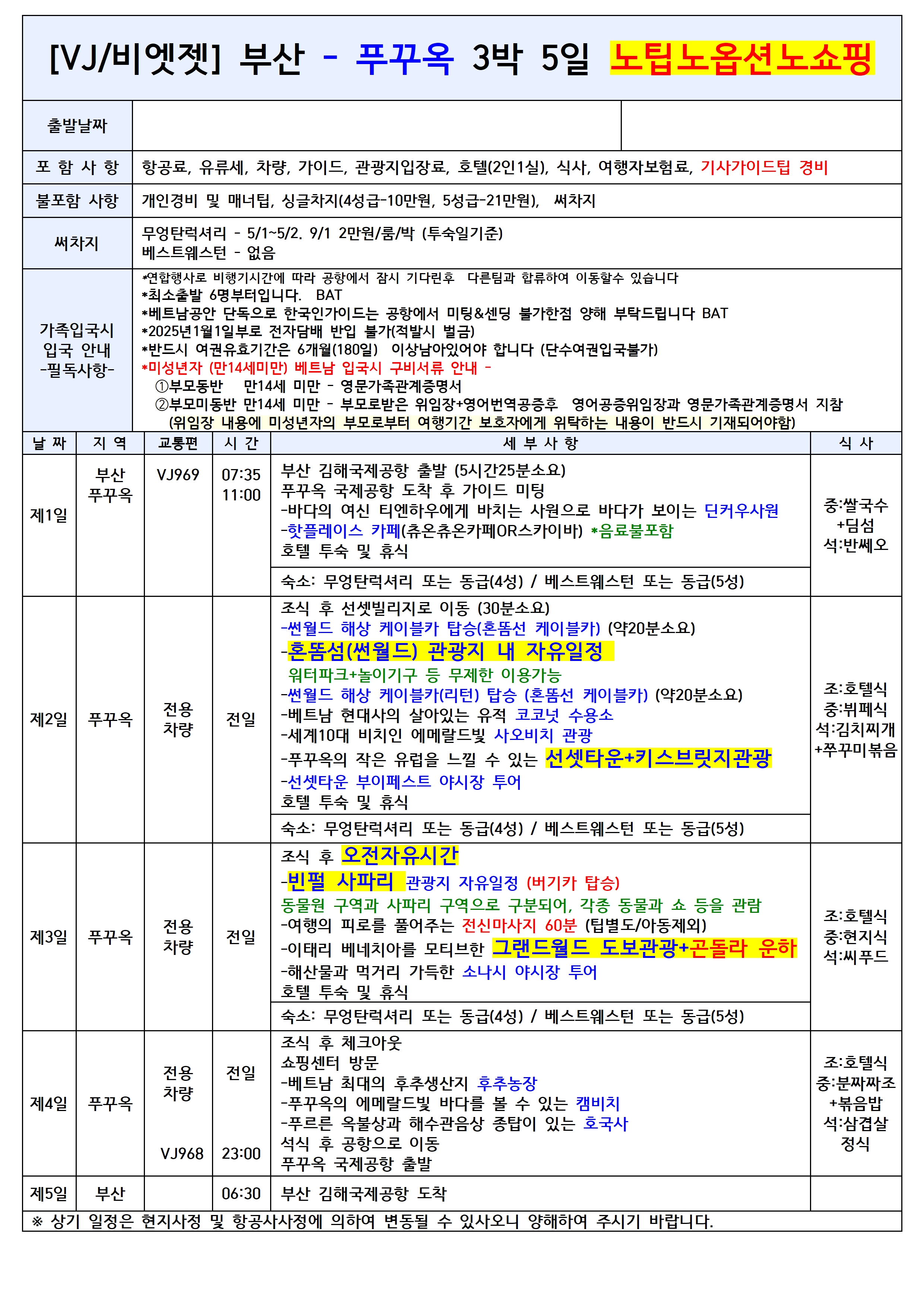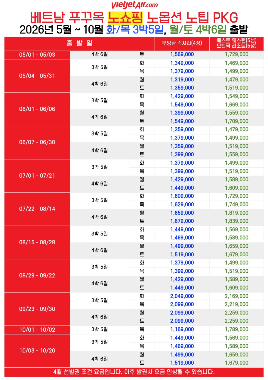 🚫현지 지불 0원 패키지 상품!!