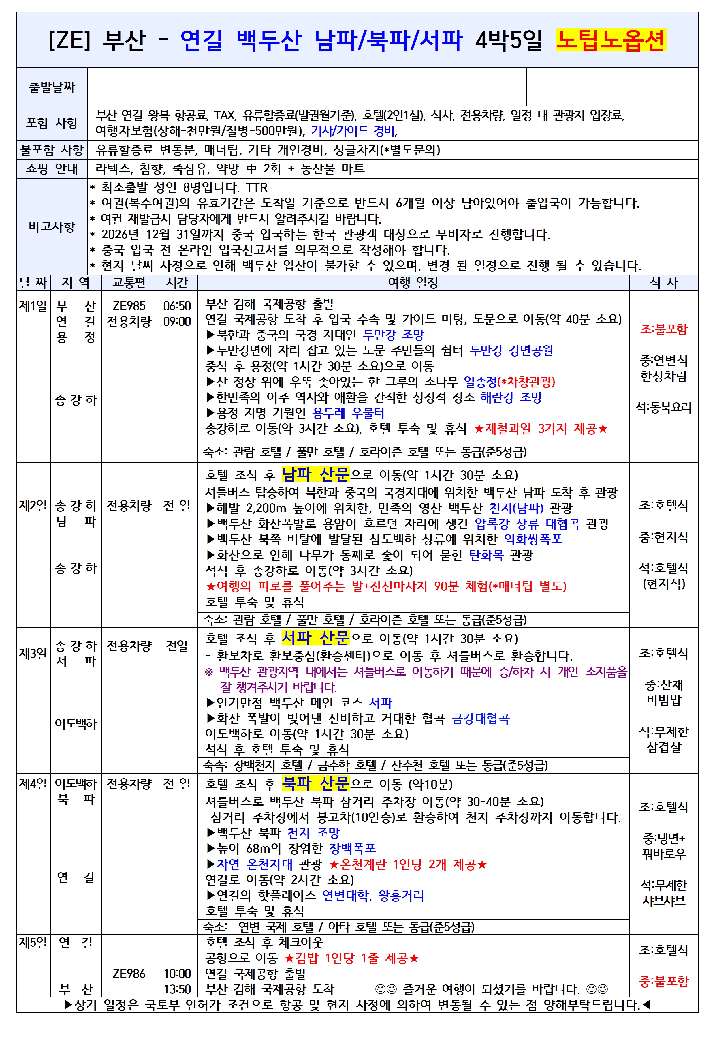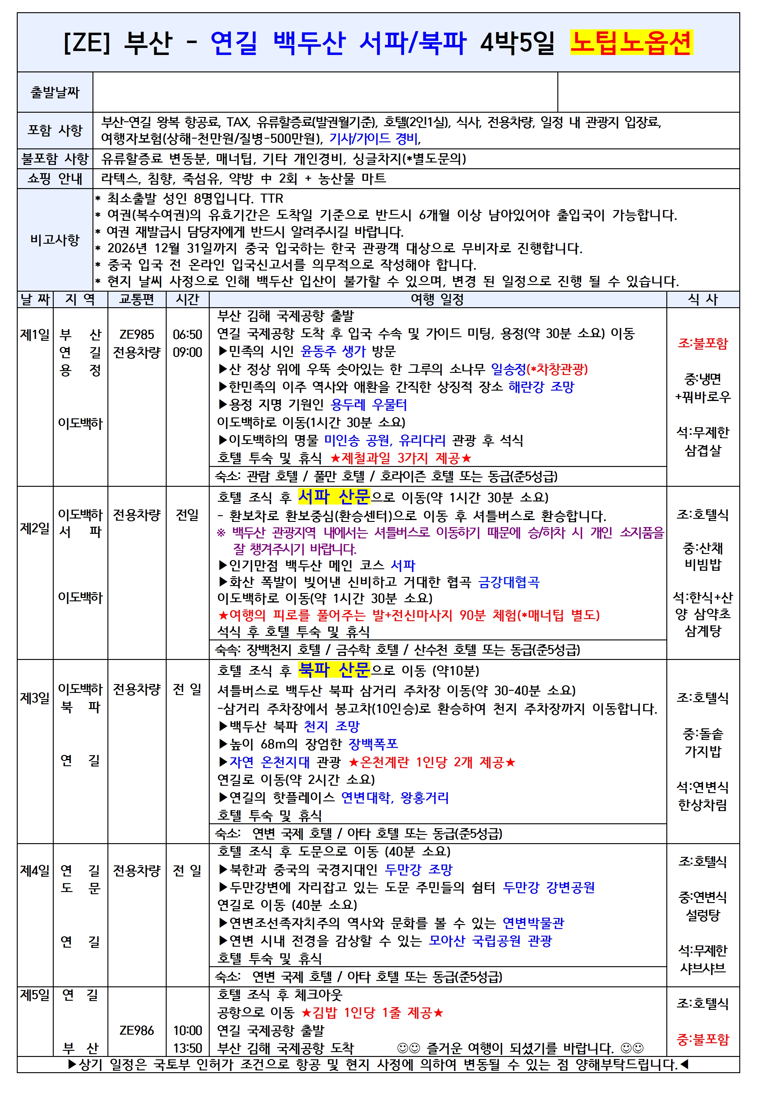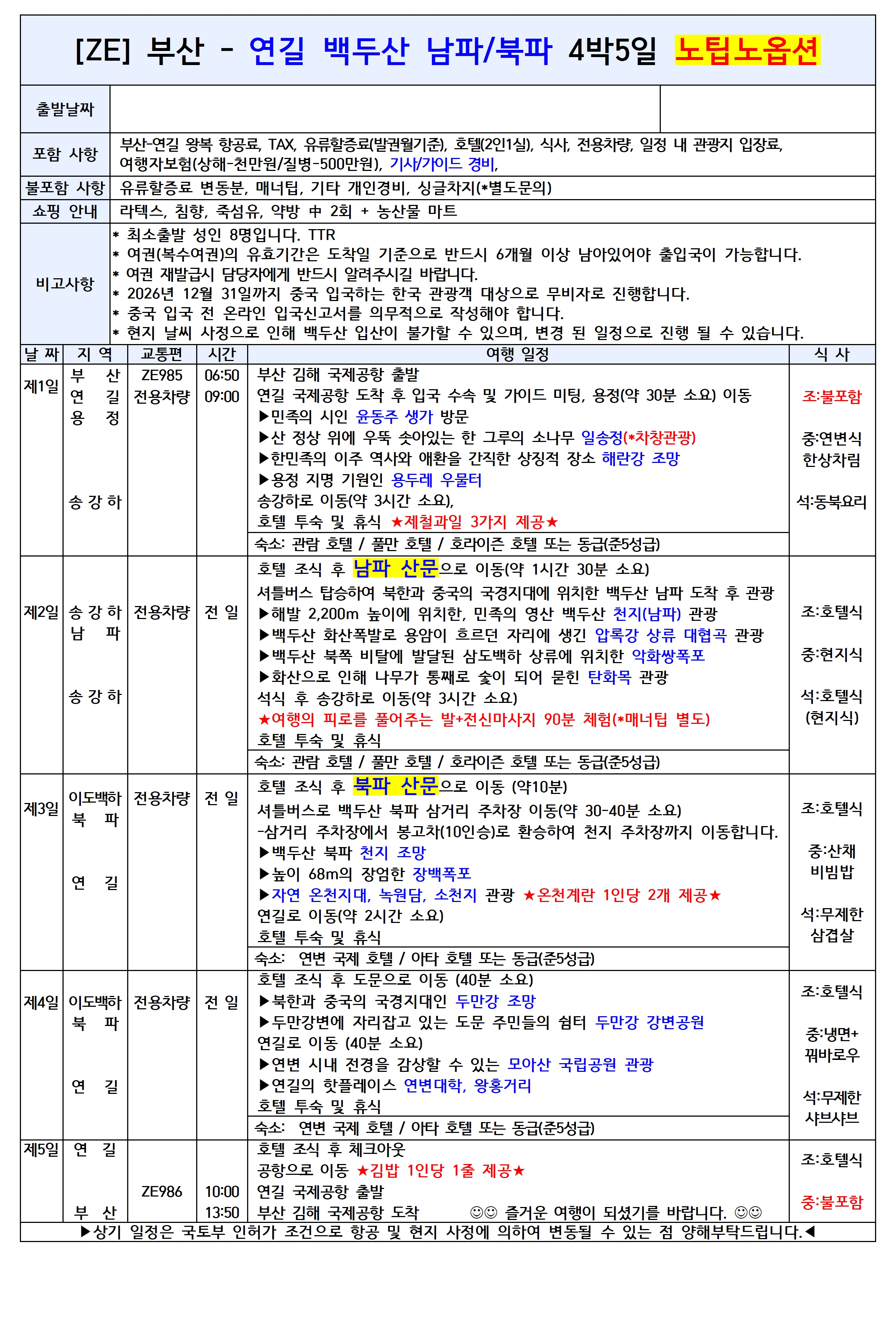 🌿 부산出 연길/백두산 패키지 (이스타항공 직항)