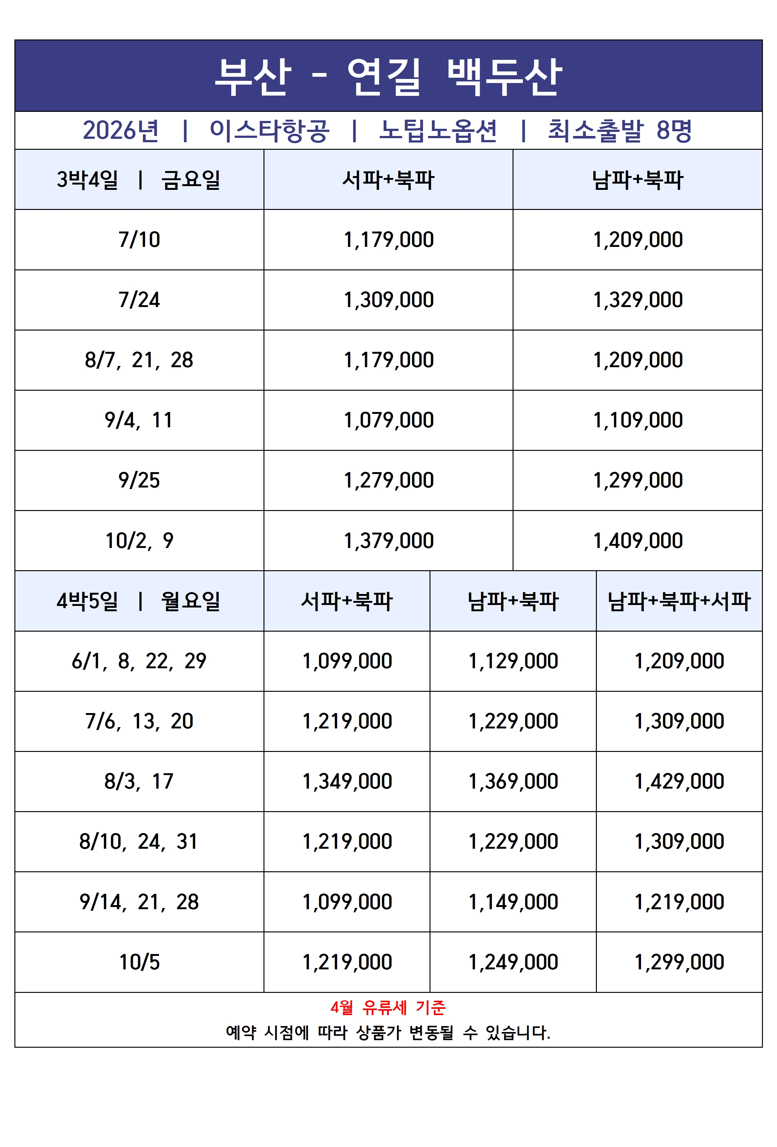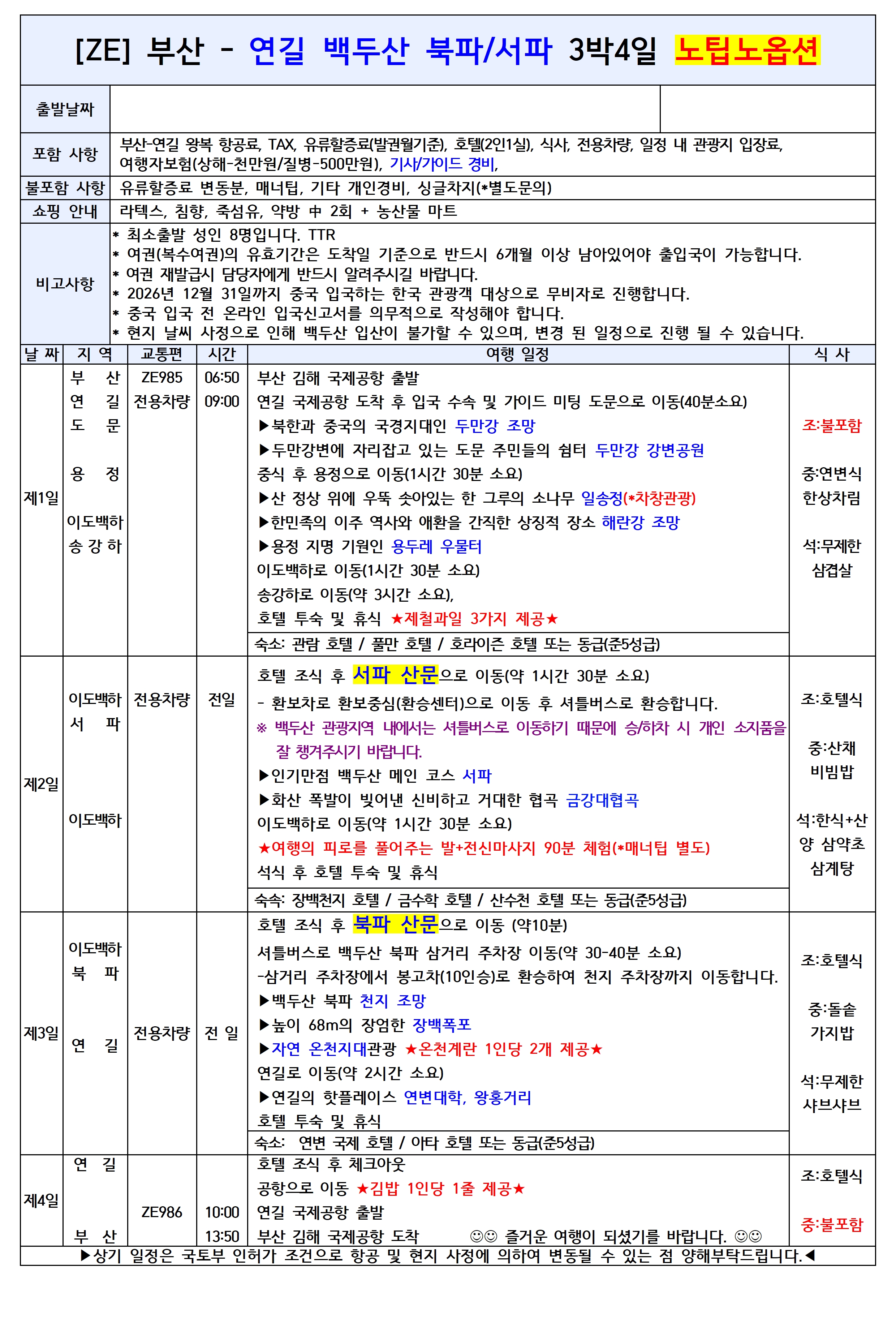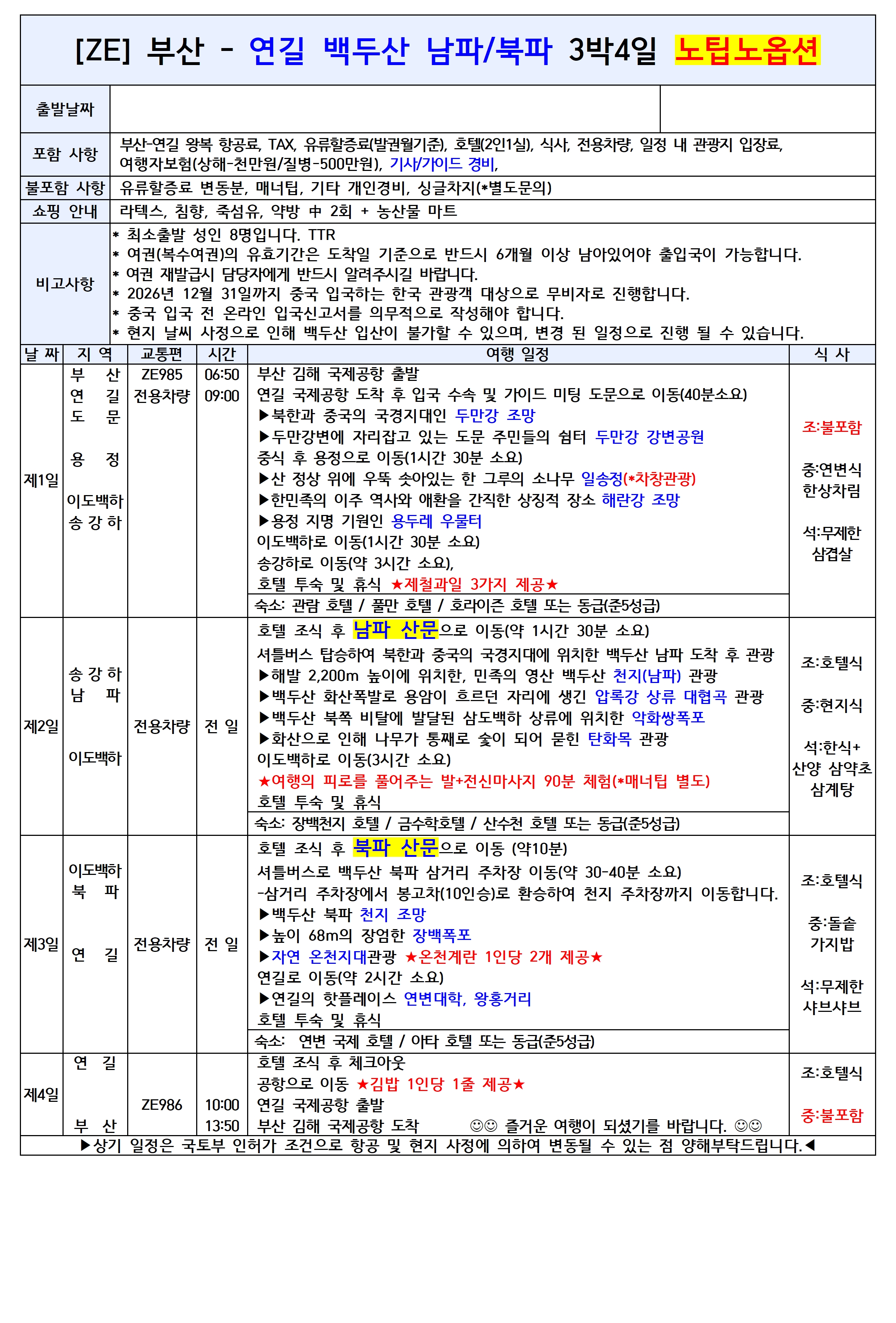 🌿 부산出 연길/백두산 패키지 (이스타항공 직항)