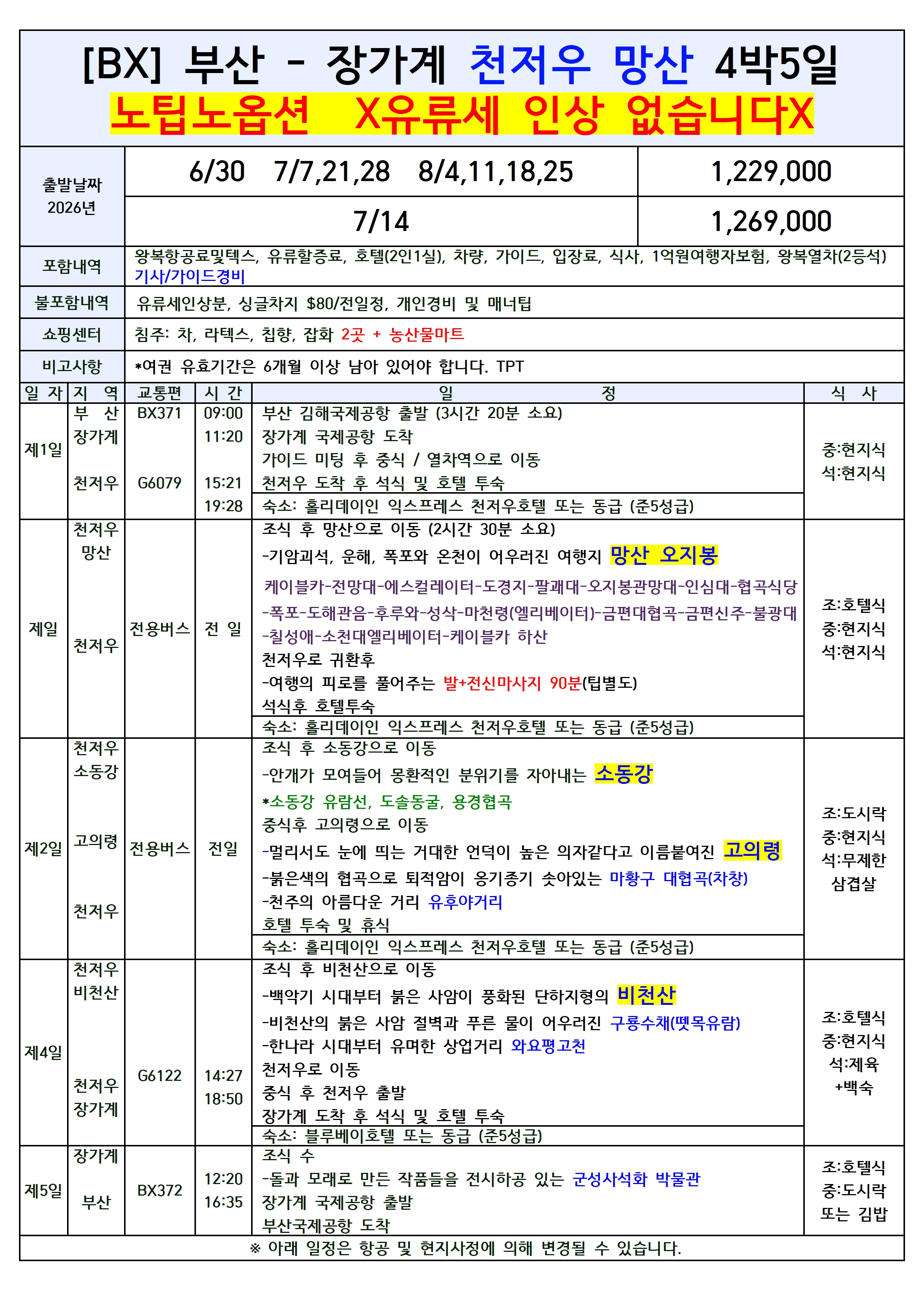 부산출발 장가계로 더욱 가까워진 중국 남부의 절경을 만나보세요
